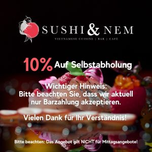 Bei Sushi & Nem erwartet Sie eine geschmackvolle Reise durch Asien – mit handgerolltem Sushi, knackigen Sommerrollen und feurigen Spezialitäten aus Vietnam und Thailand. Frisch zubereitet, authentisch gewürzt und mit viel Liebe serviert.