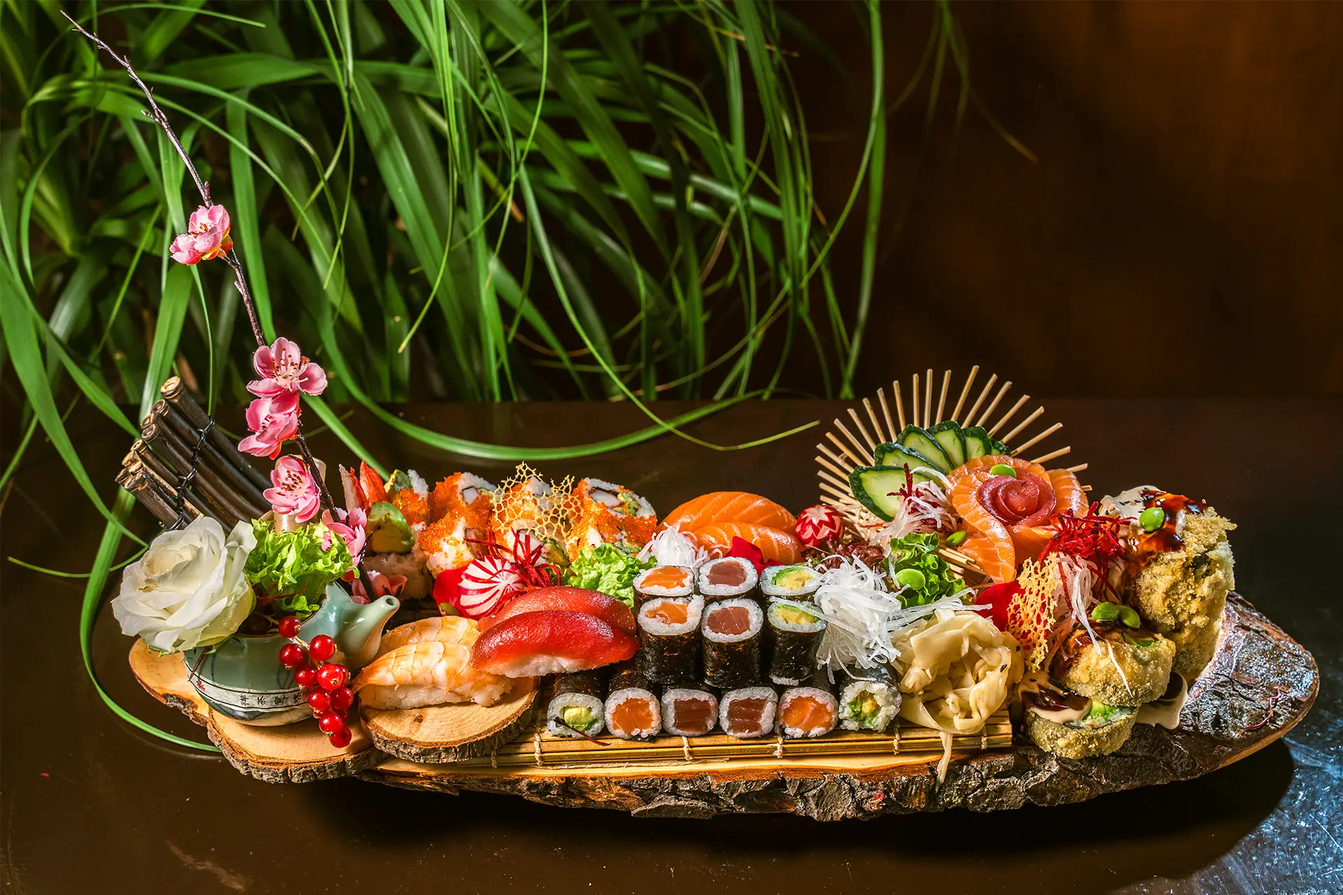 Unsere Sushi-Meister zelebrieren Handwerkskunst auf höchstem Niveau: kunstvolle Fusion-Sushi-Kreationen, die nicht nur geschmacklich, sondern auch visuell beeindrucken. Ob klassisch oder experimentell – hier wird jede Rolle zur kleinen Sensation. Und auch abseits des Sushi-Angebots erwartet Sie eine Auswahl feinster asiatischer Delikatessen, die Gaumen und Herz erfreuen.